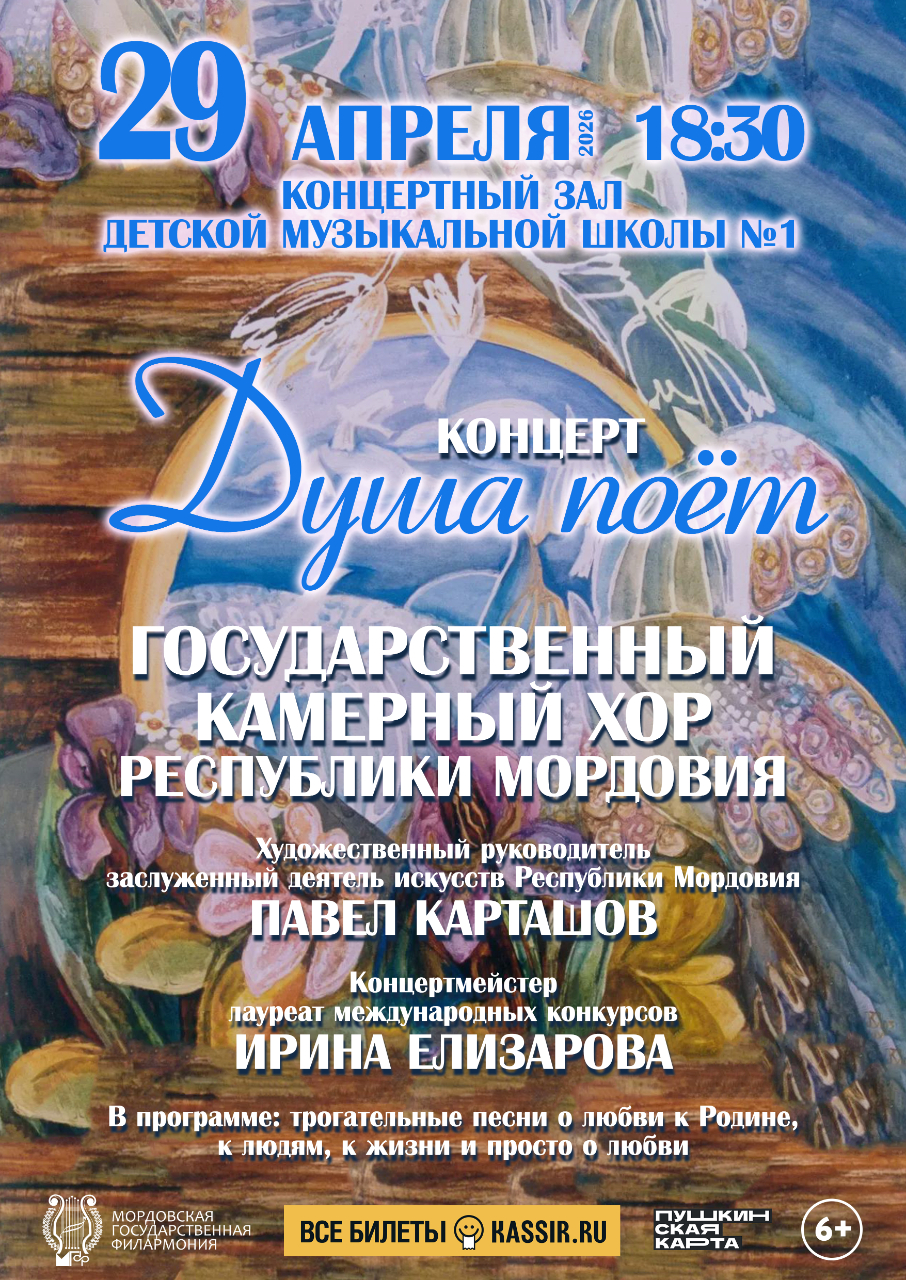 Государственный камерный хор Республики Мордовии подготовил солнечную весеннюю программу. Прозвучат трогательные и добрые песни о любви к родному краю и природе, к людям, к жизни, а также о настоящей дружбе и верности: «Покуда кровь моя бурлит», «Песнь любви», «Лавсень моро» («Колыбельная»), «Заплетися, плетень», «Ой ты, Порушка-Пораня», «Диле» и многие другие.