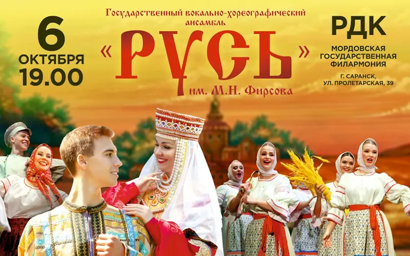6 октября в 19.00 на сцене Республиканского дворца культуры жители и гости Мордовии увидят театрализованную музыкальную сюиту «Песнь о земле русской», сотканную из вокально-хореографических композиций, в которых тонко переплетены мотивы любимых, известных и малоизвестных народных песен и наигрышей, словно ожившие лаковые миниатюры знаменитого народного мстёрского промысла.